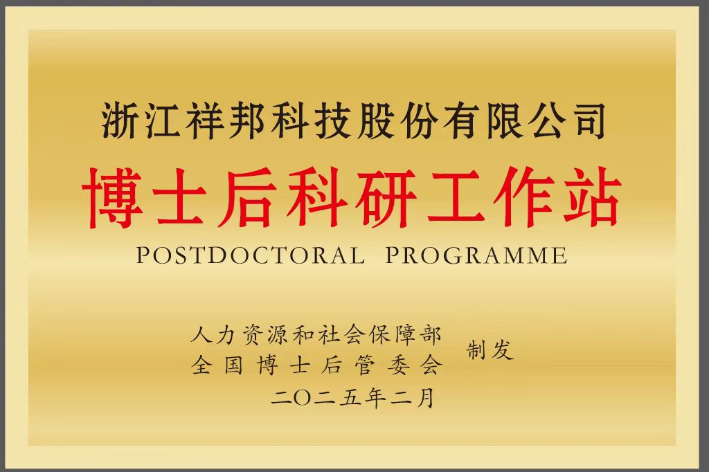 2025年2月經(jīng)國(guó)家人社部、全國(guó)博士后管理委員會(huì)聯(lián)合批準(zhǔn),祥邦科技正式設(shè)立國(guó)家級(jí)博士后科研工作站。這一里程碑距2023年3月建成浙…
